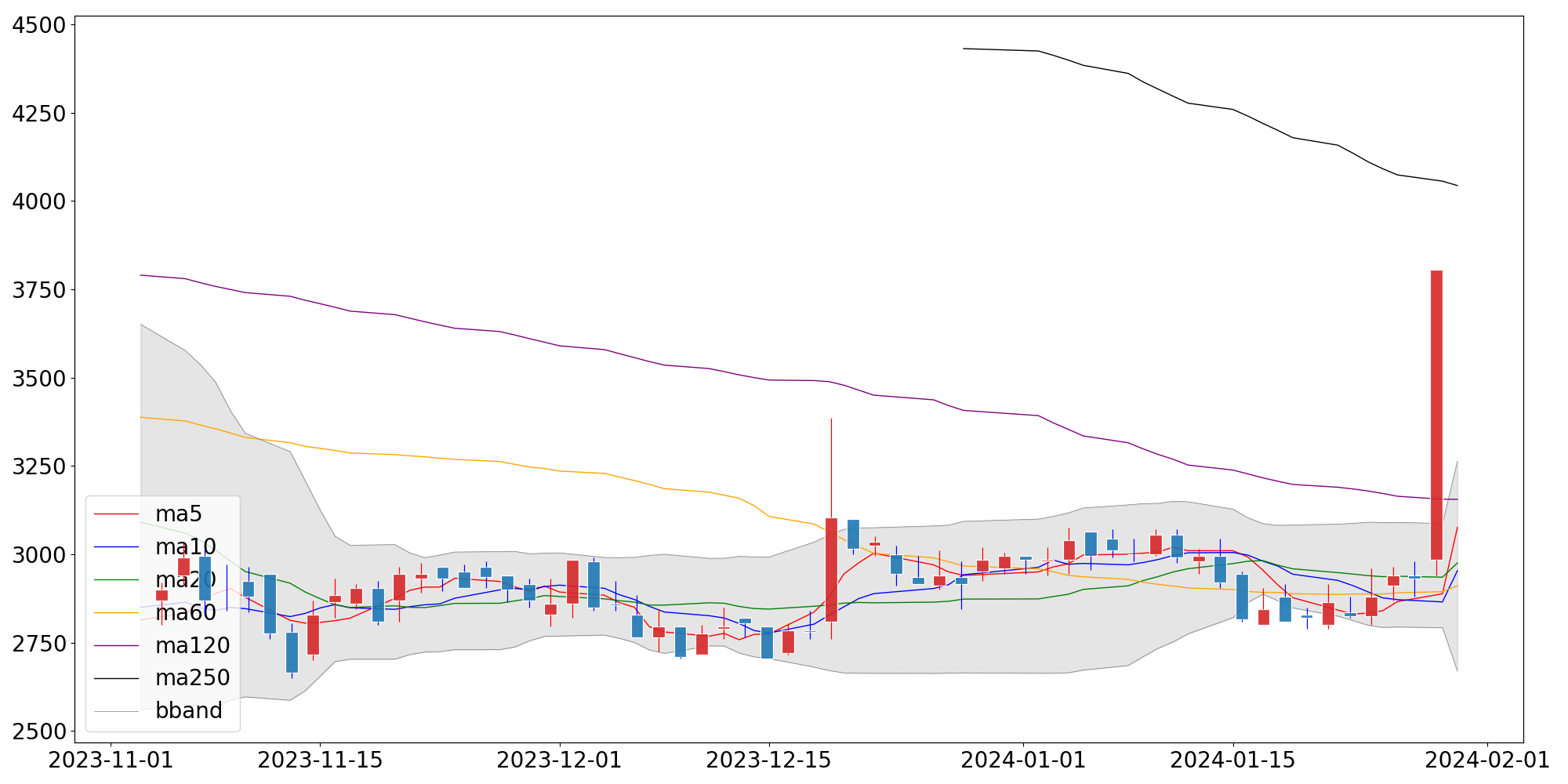 □ 오늘의 종가 : 3,805 (+875, +29.86%)