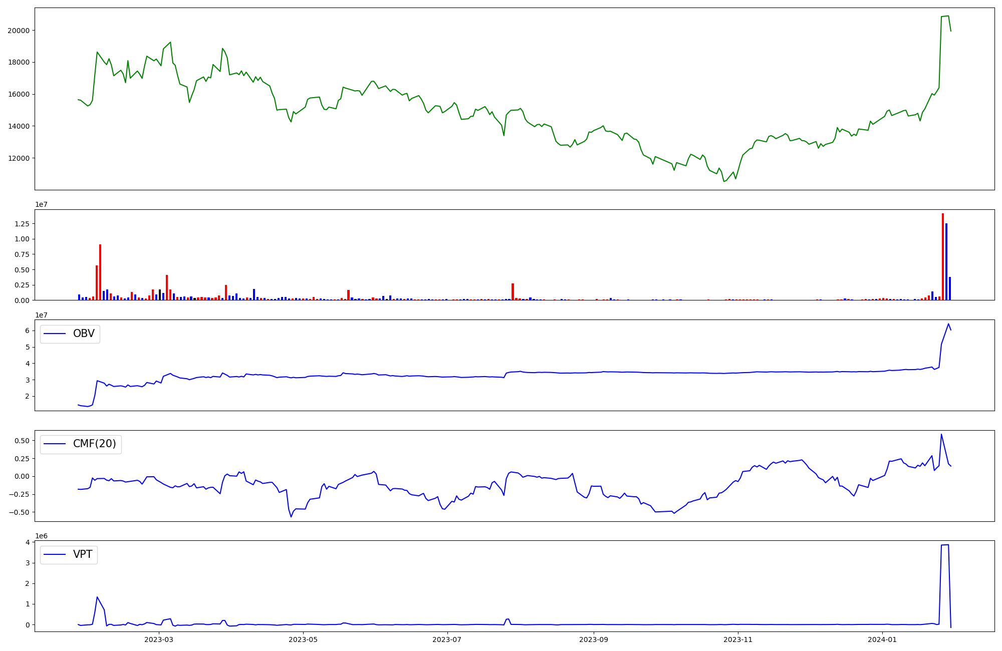 | OBV | CMF | VPT | |