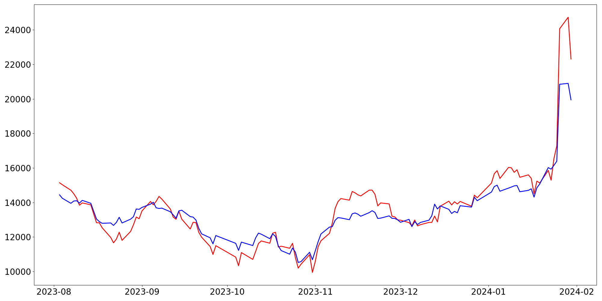 [ - : 실제값(종가) / - : 예측값(종가) ]