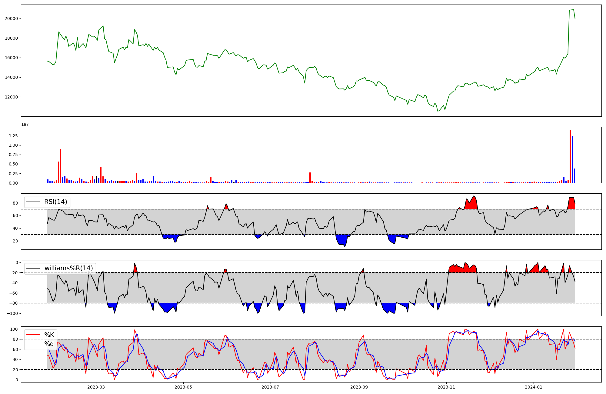 | RSI | Williams %R | stochastic(%K) | |