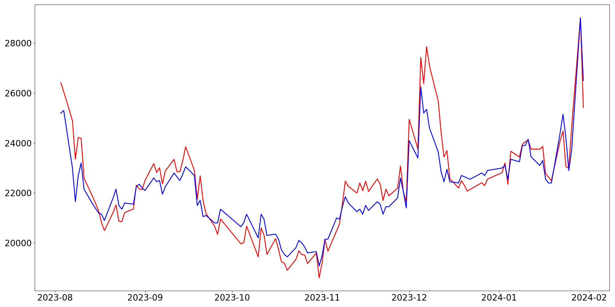 [ - : 실제값(종가) / - : 예측값(종가) ]