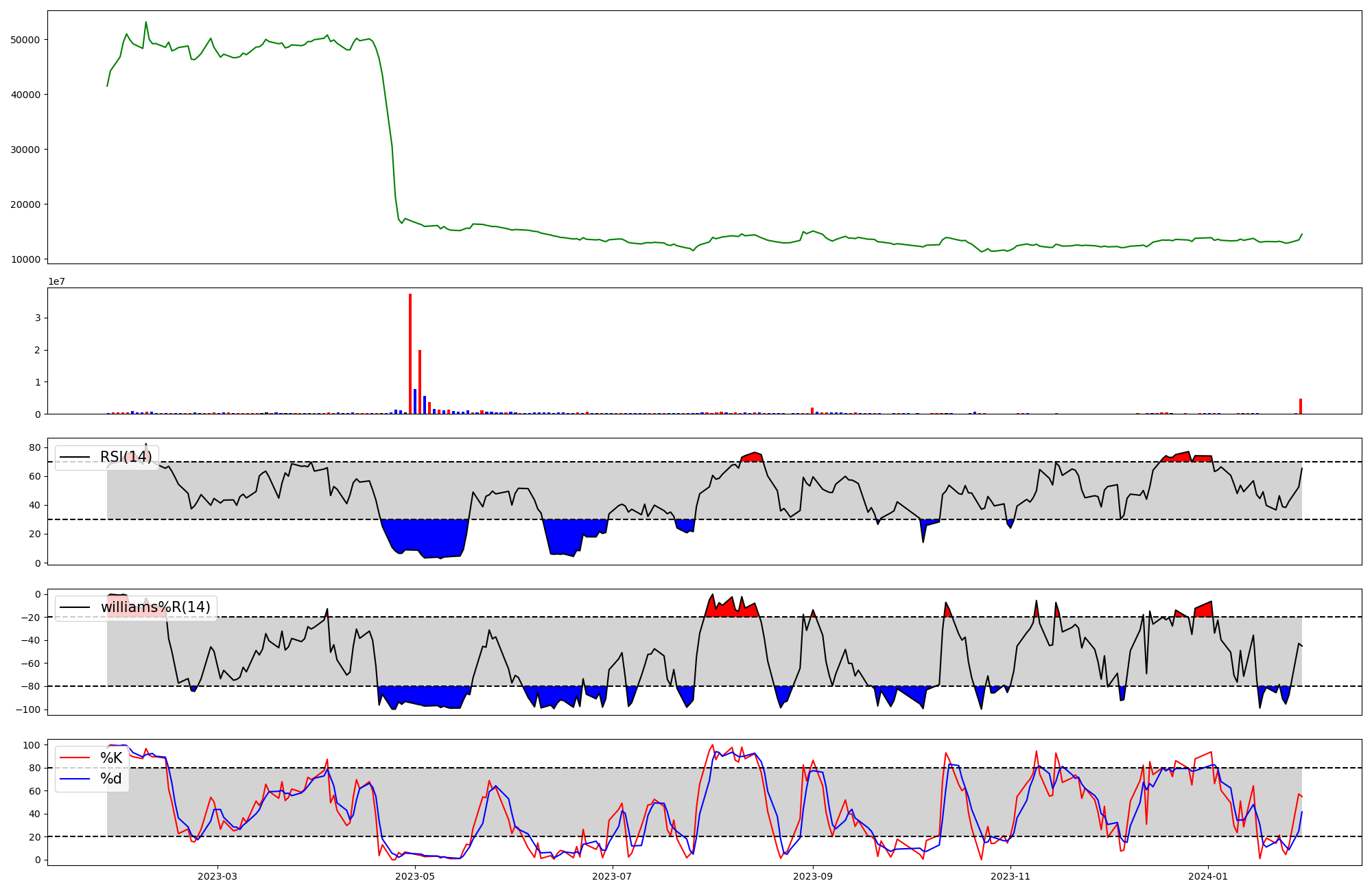| RSI | Williams %R | stochastic(%K) | |