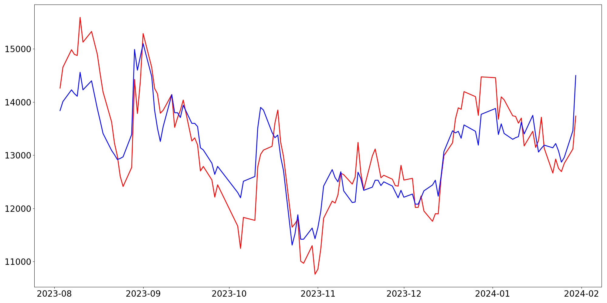 [ - : 실제값(종가) / - : 예측값(종가) ]