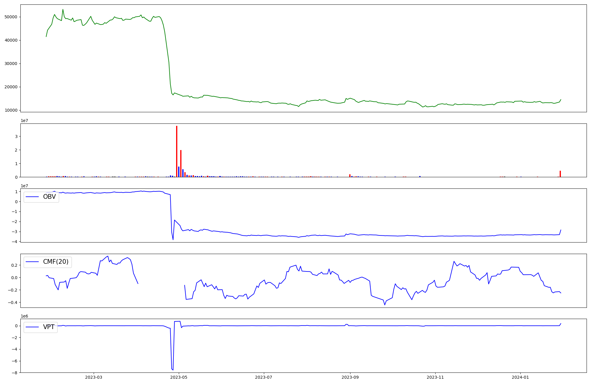 | OBV | CMF | VPT | |