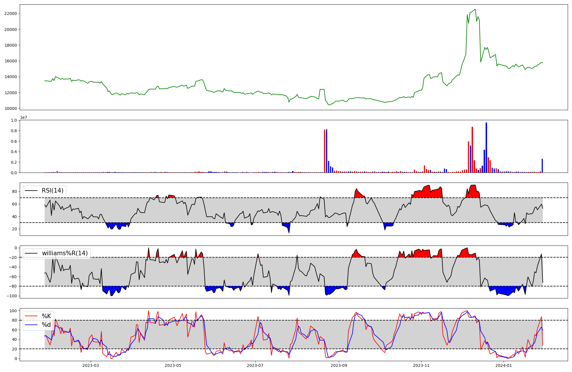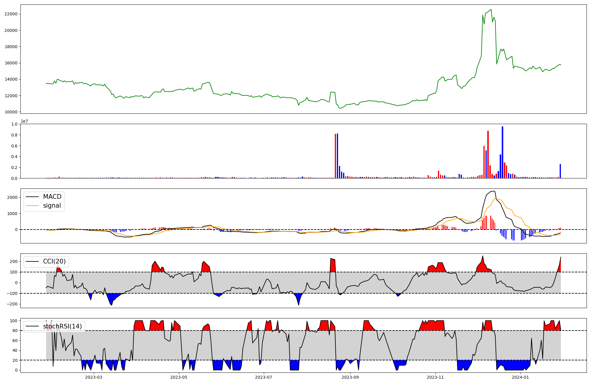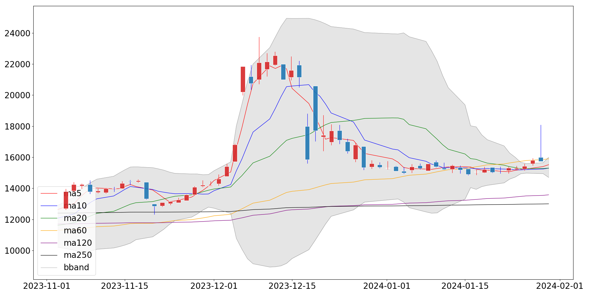 □ 중기 : 현재 종가가 중기(60일) 이동평균값(15,902원)을 하회 하여 중기적 추세 하락 중