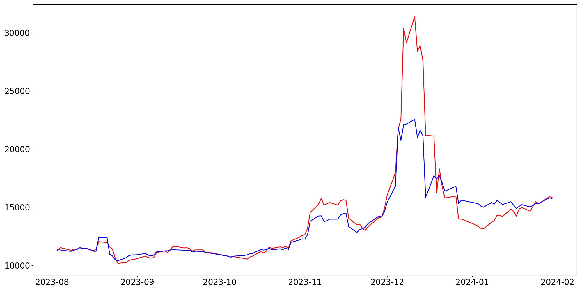 [ - : 실제값(종가) / - : 예측값(종가) ]