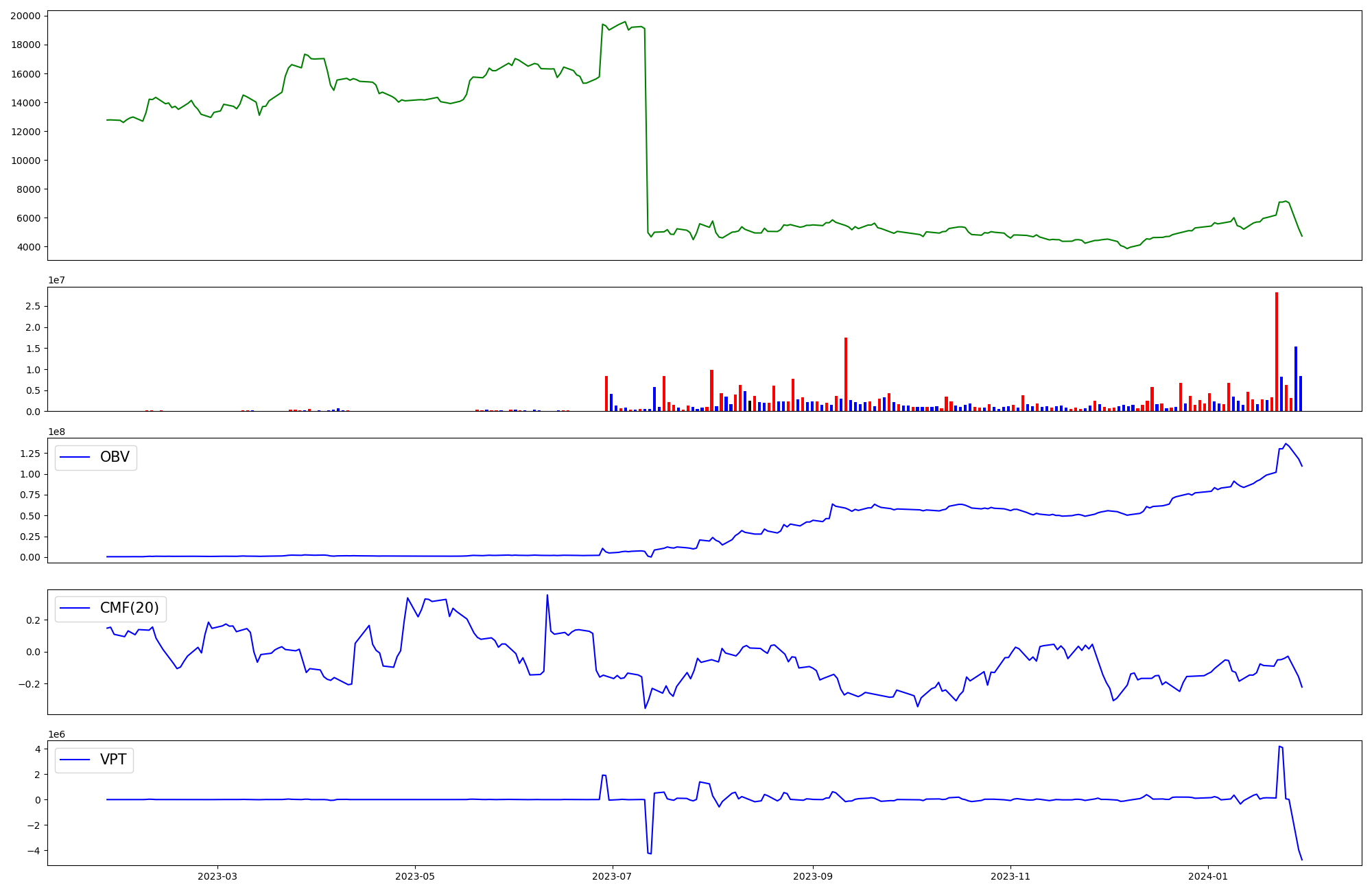 | OBV | CMF | VPT | |