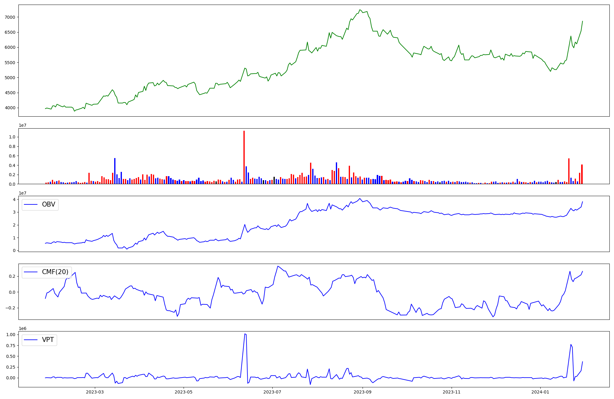 | OBV | CMF | VPT | |