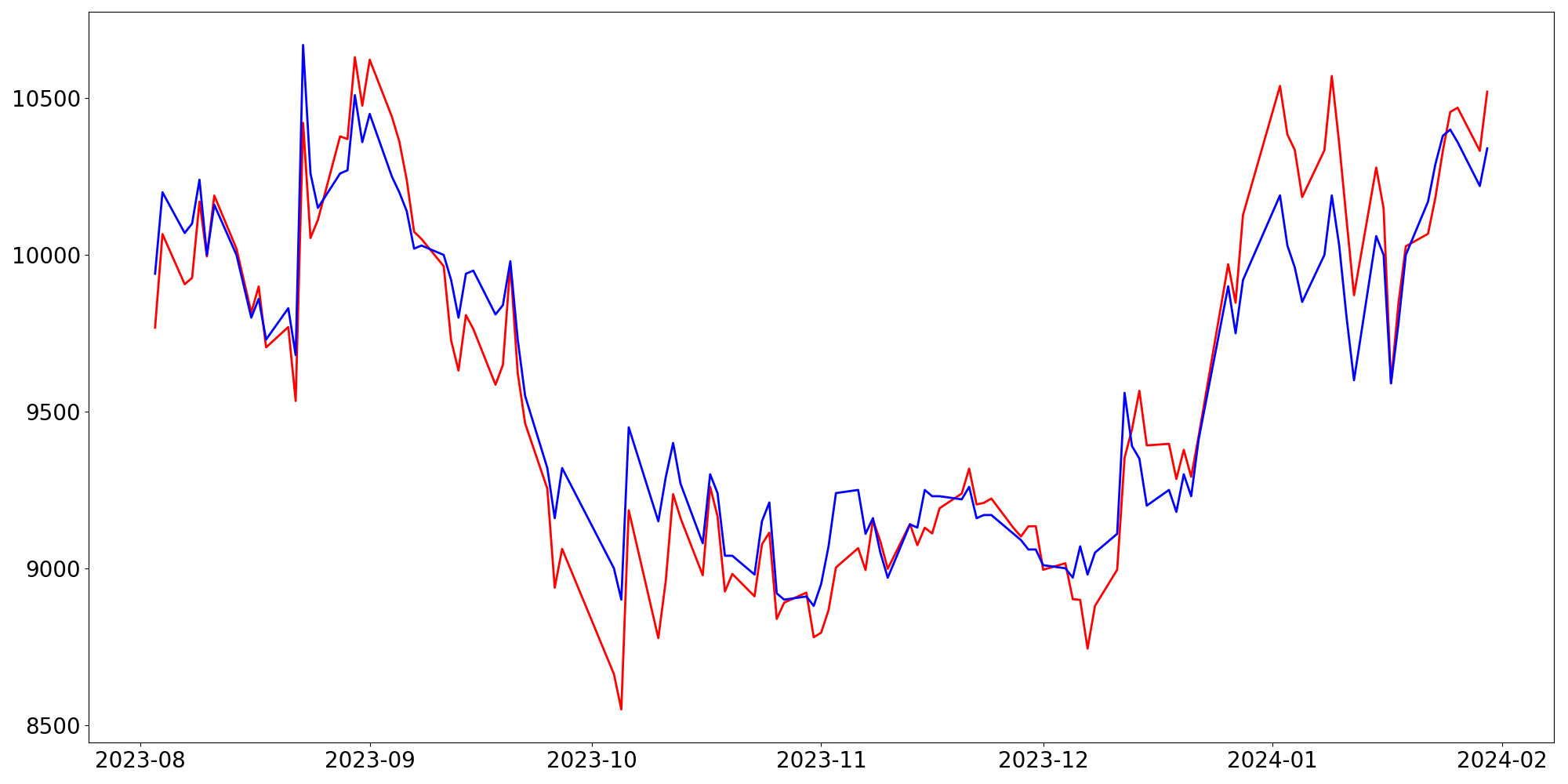 [ - : 실제값(종가) / - : 예측값(종가) ]