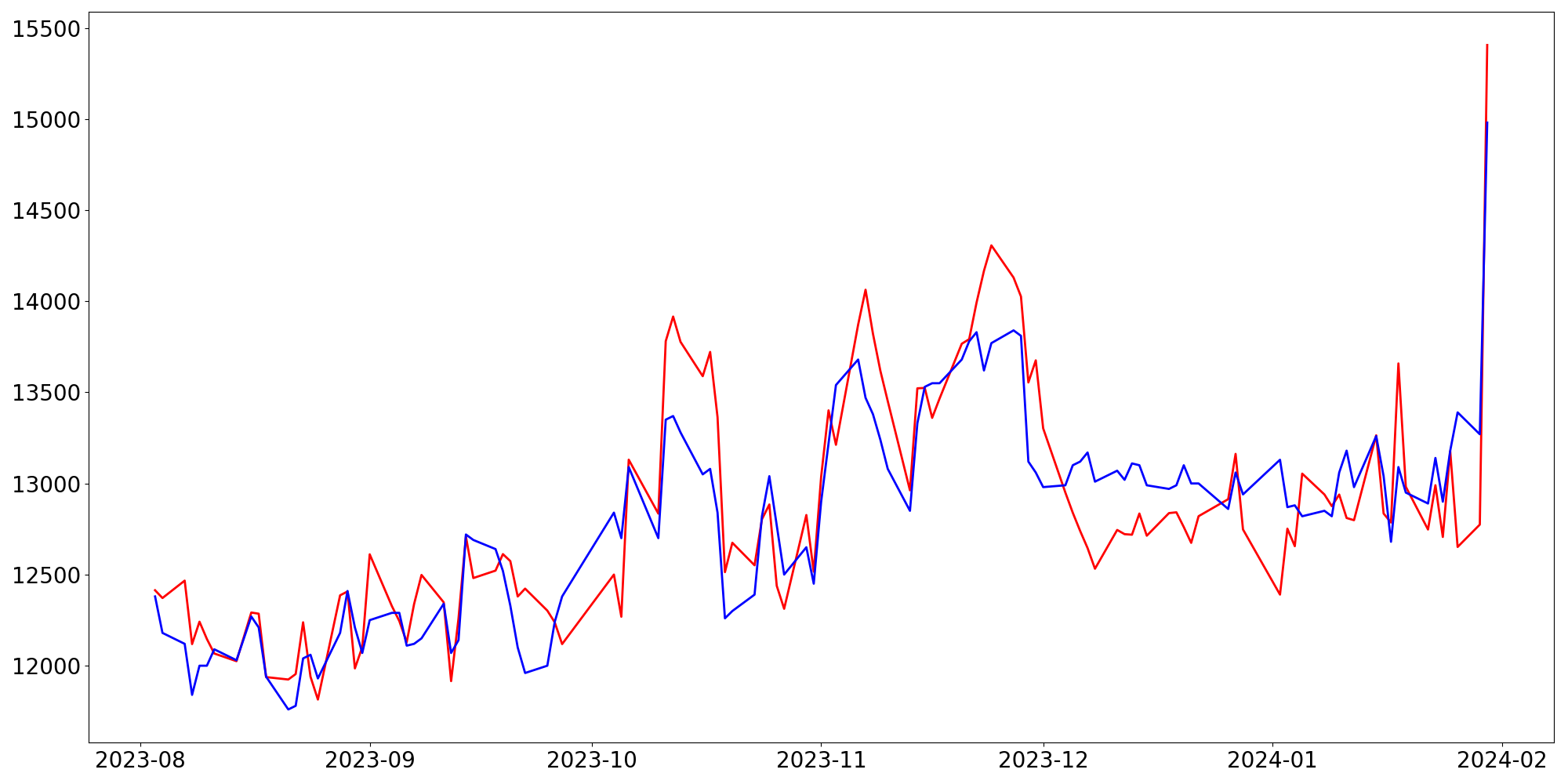 [ - : 실제값(종가) / - : 예측값(종가) ]