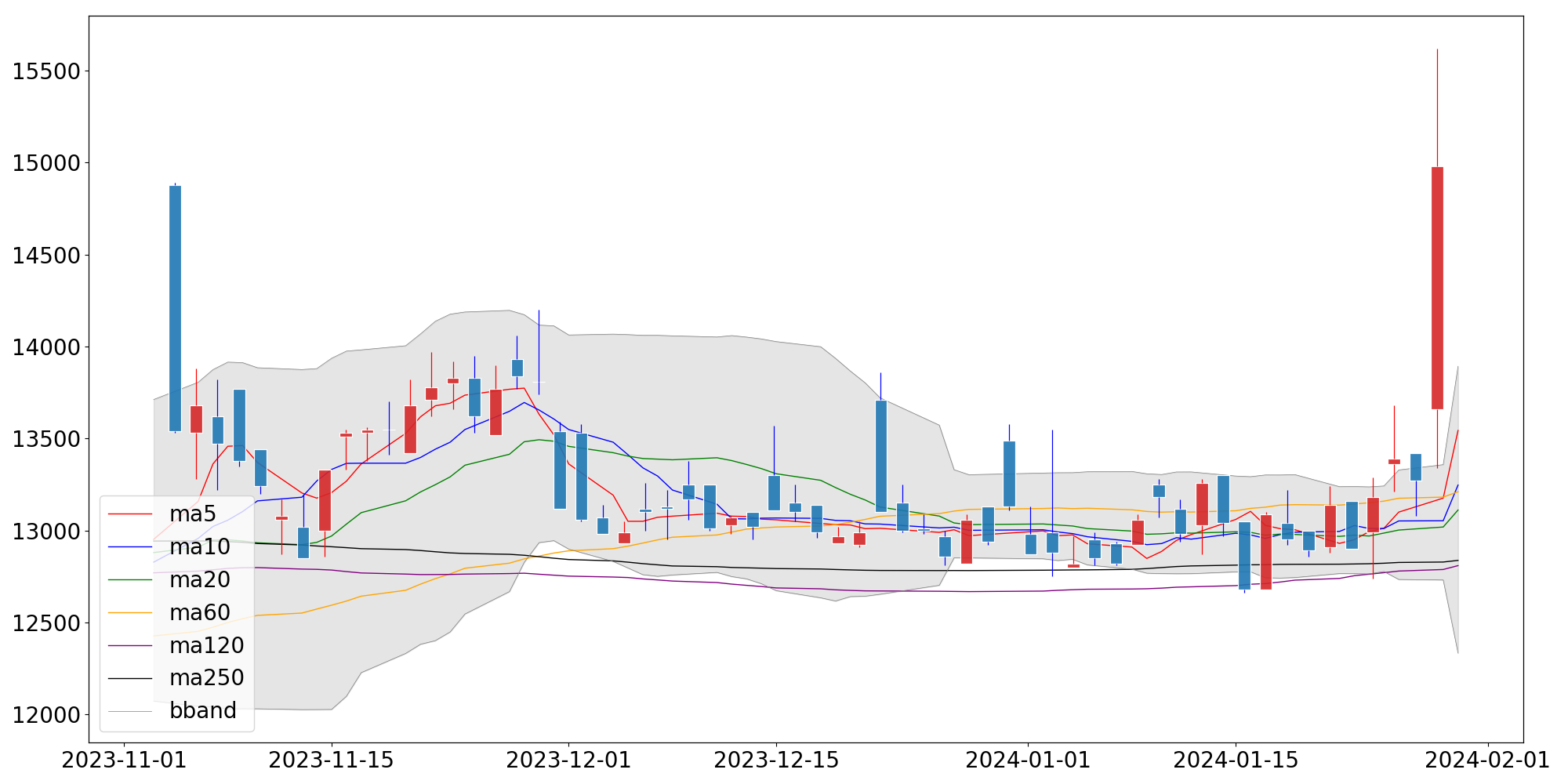 □ 오늘의 종가 : 14,980 (+1,710, +12.89%)