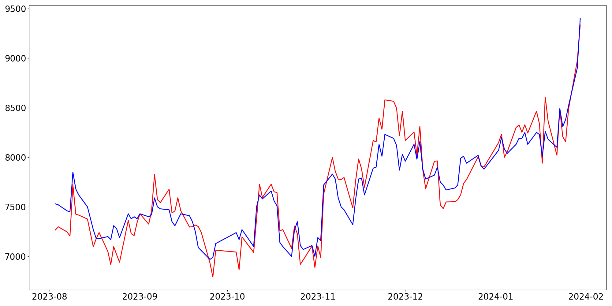 [ - : 실제값(종가) / - : 예측값(종가) ]