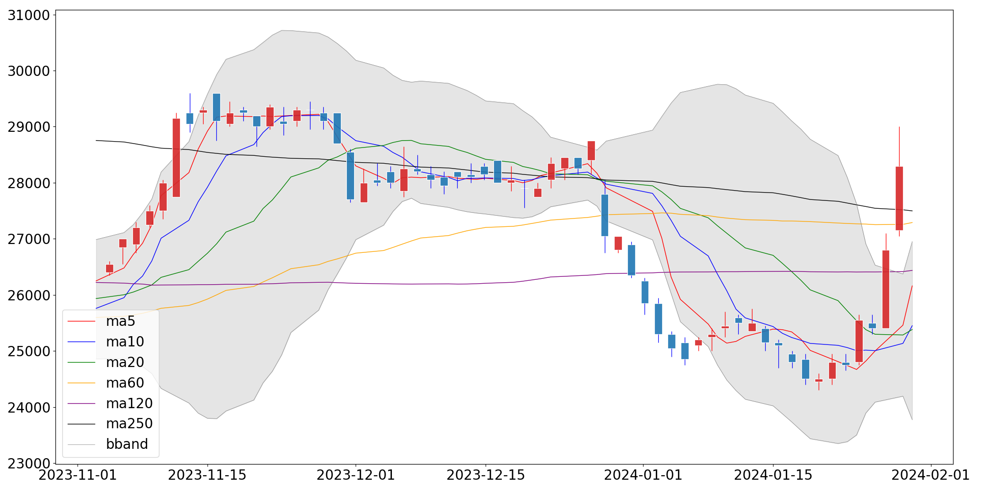 | 단순이동평균 | 26,160.00 | 25,450.00 | 25,382.50 |