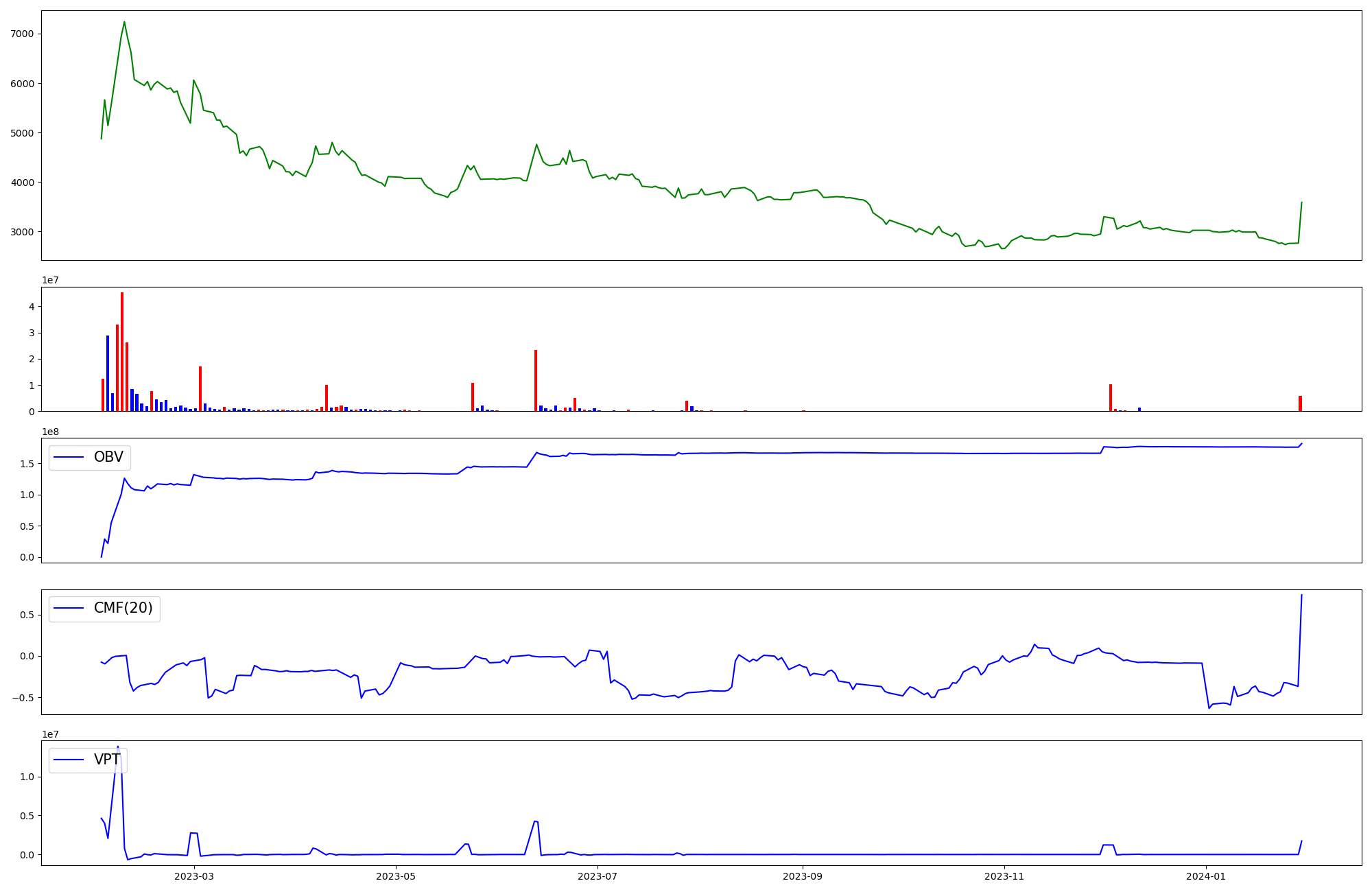 | OBV | CMF | VPT | |