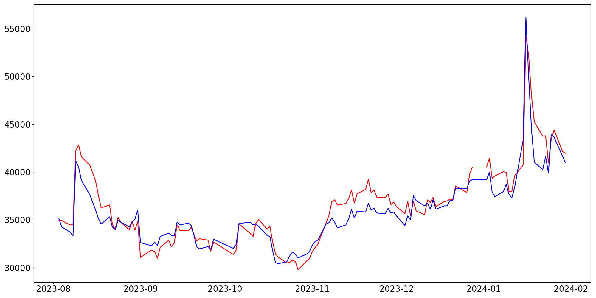 [ - : 실제값(종가) / - : 예측값(종가) ]