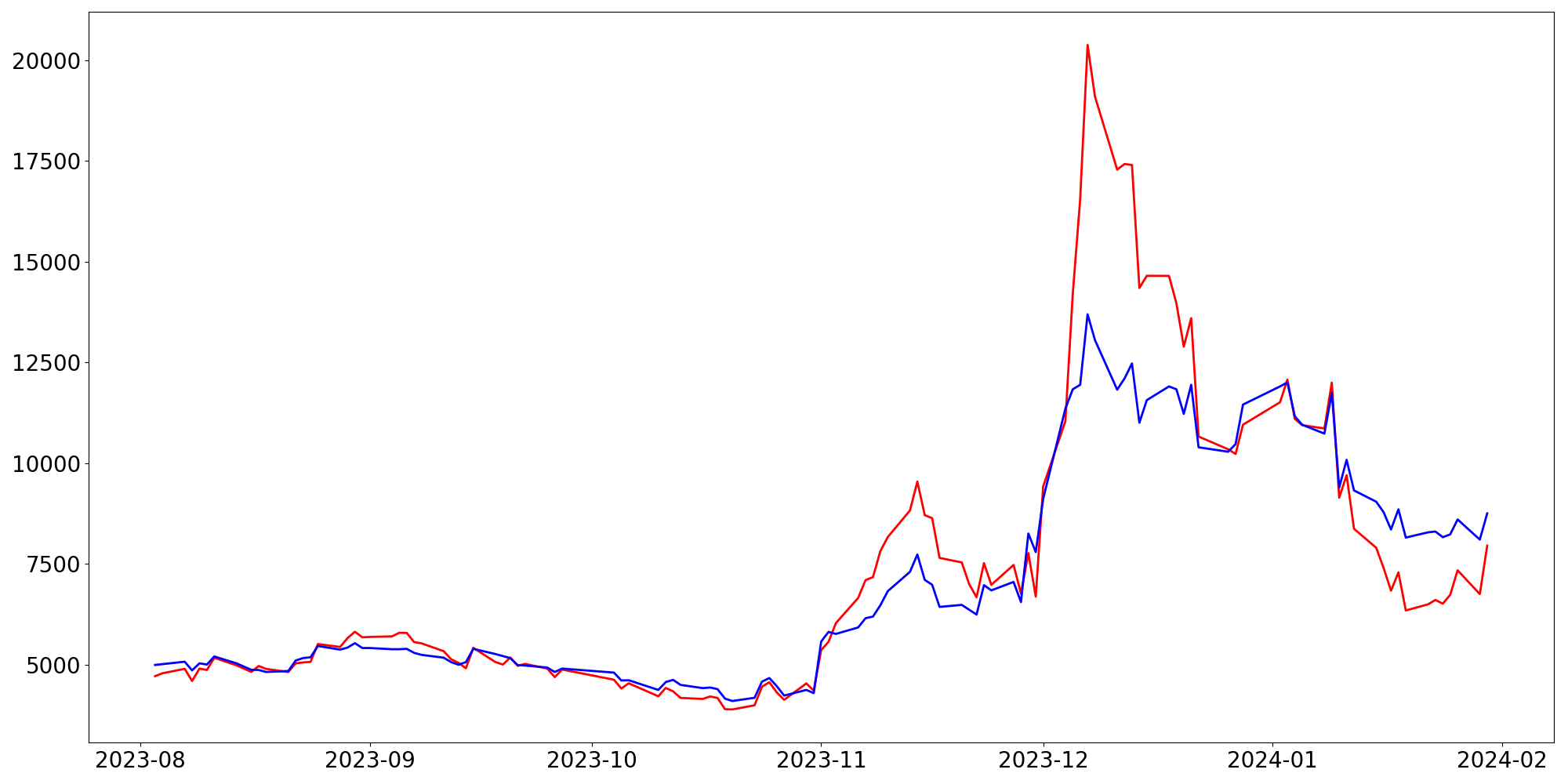 [ - : 실제값(종가) / - : 예측값(종가) ]