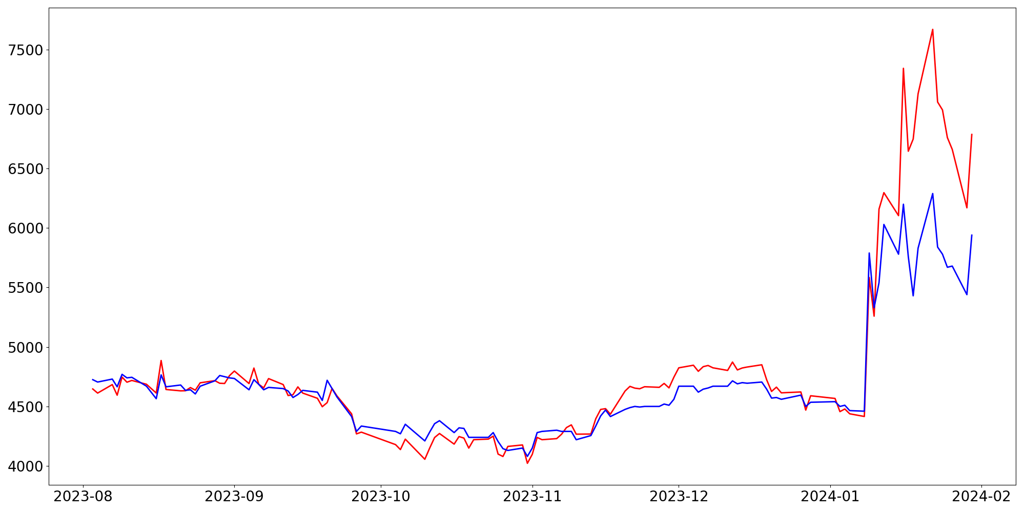 [ - : 실제값(종가) / - : 예측값(종가) ]