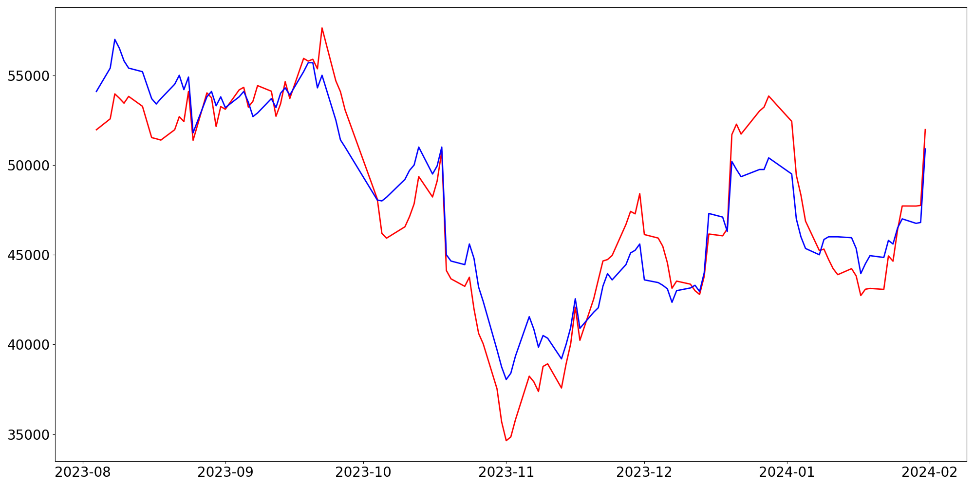 [ - : 실제값(종가) / - : 예측값(종가) ]
