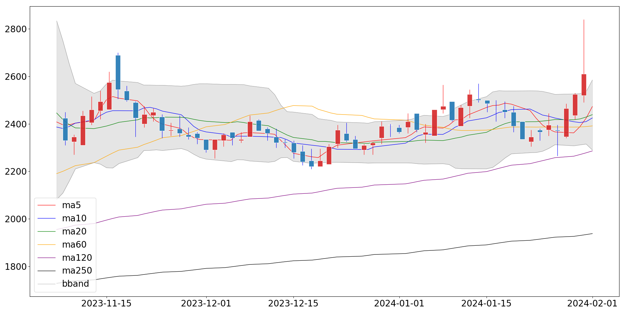 □ 중기 : 현재 종가가 중기(60일) 이동평균값(2,391원)을 상회 하여 중기적 추세 상승 중