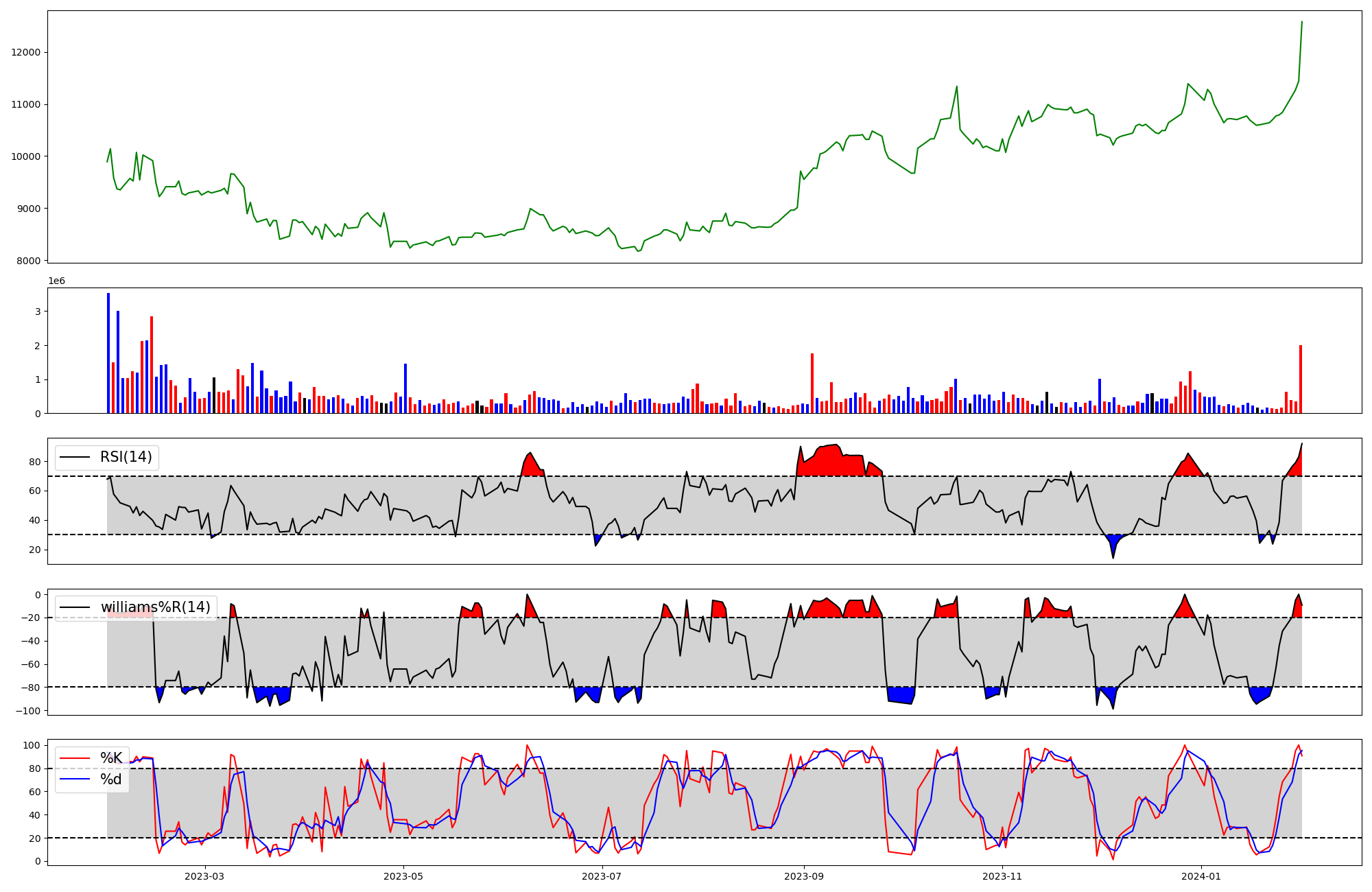 □ 중기 : 현재 종가가 중기(60일) 이동평균값(10,778원)을 상회 하여 중기적 추세 상승 중