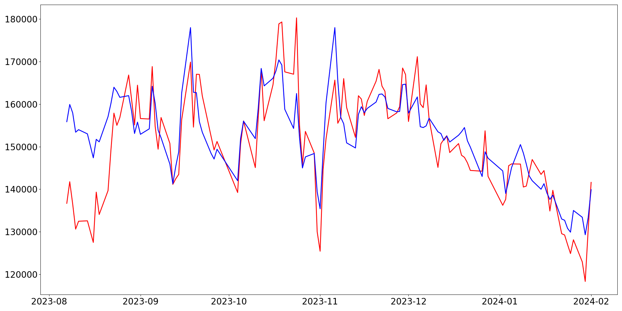 [ - : 실제값(종가) / - : 예측값(종가) ]