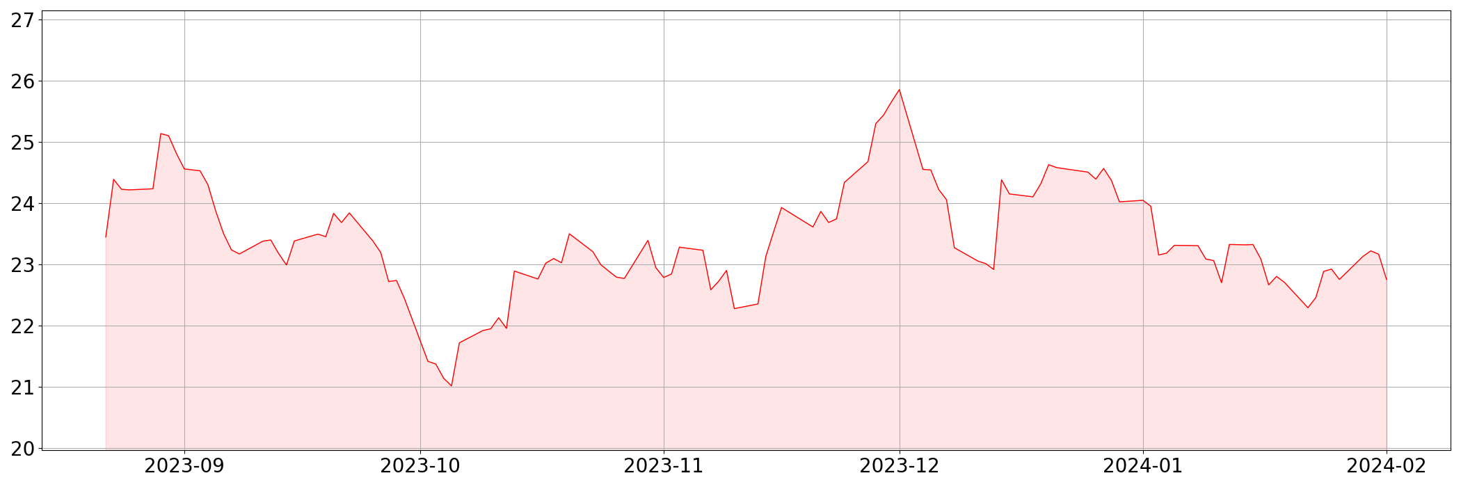 | 현재 | 22.76 | -0.41 | -1.77% |