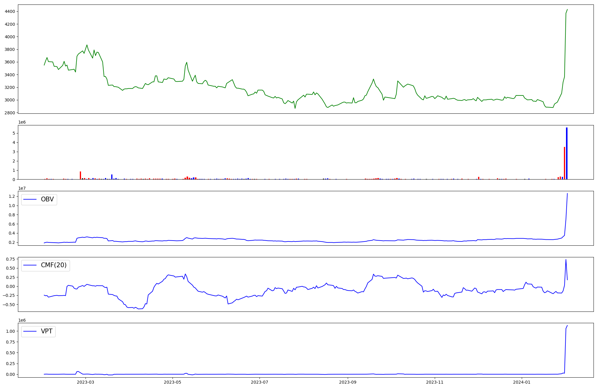 | OBV | CMF | VPT | |