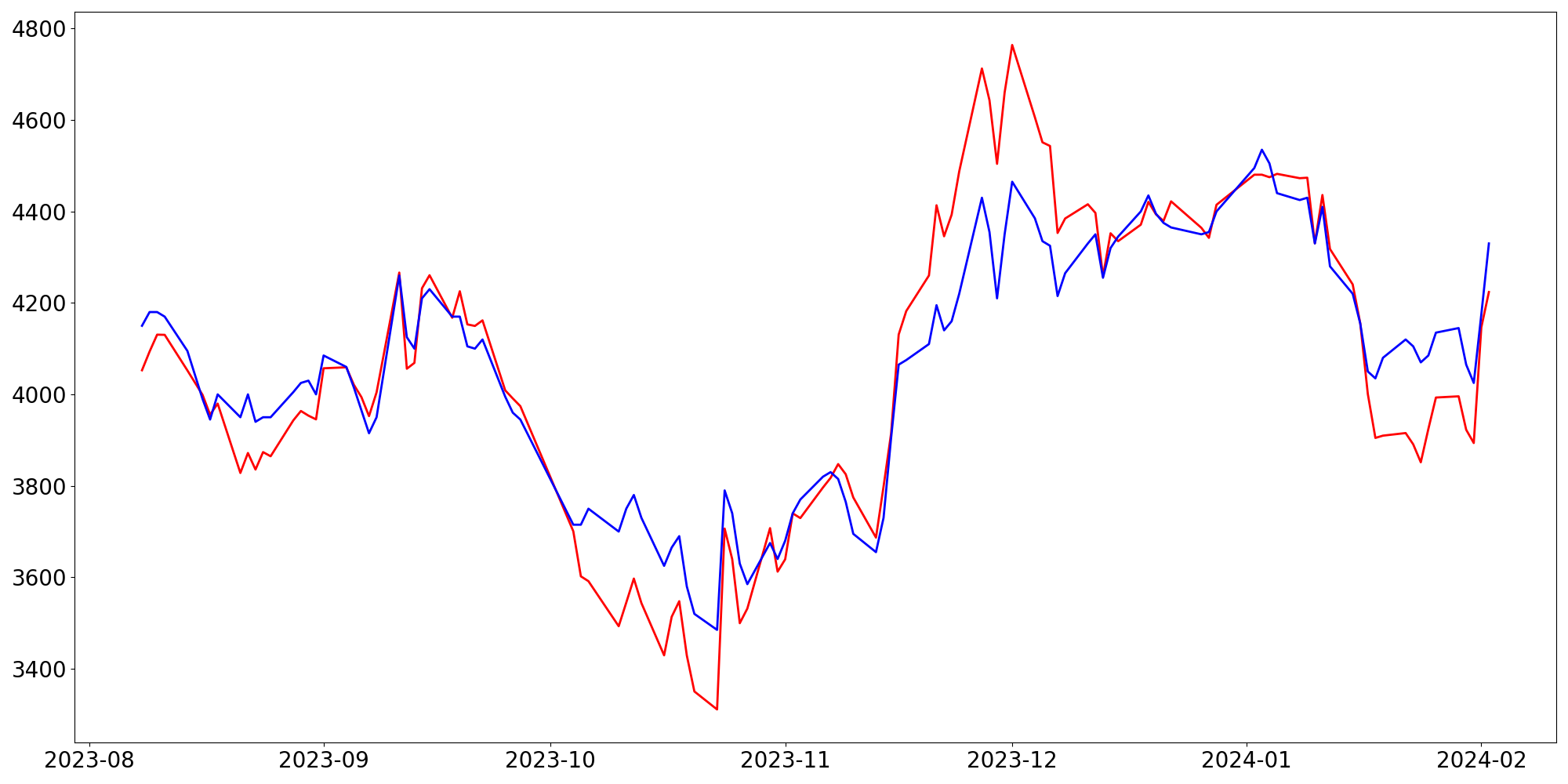 [ - : 실제값(종가) / - : 예측값(종가) ]