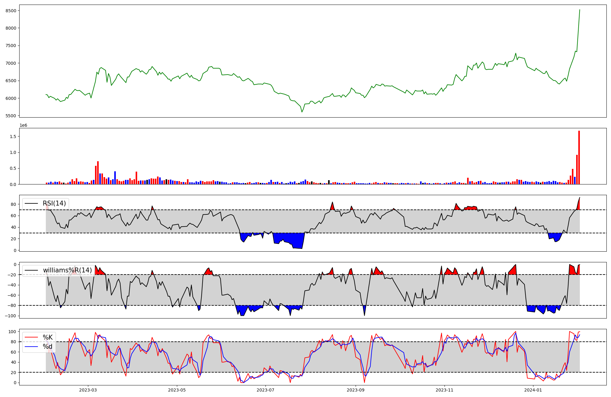 | RSI | Williams %R | stochastic(%K) | |