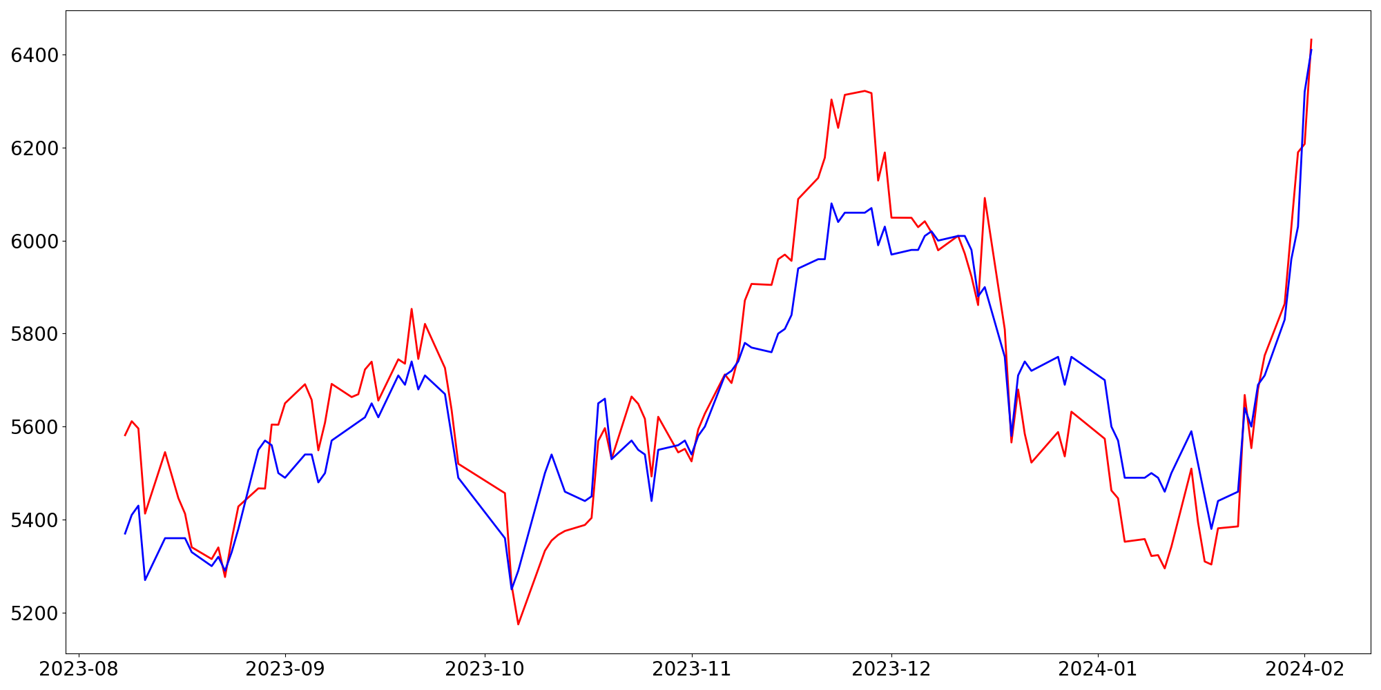 [ - : 실제값(종가) / - : 예측값(종가) ]