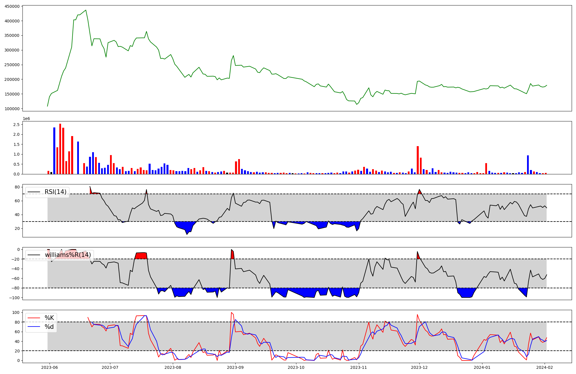 □ 장기 : 현재 종가가 장기(250일) 이동평균값(nan원)을 상회 하여 장기적 추세 상승 중