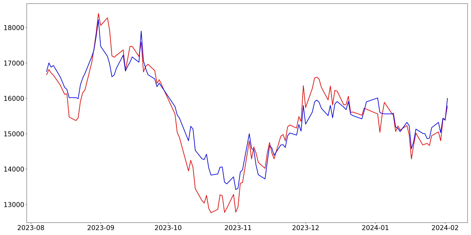 [ - : 실제값(종가) / - : 예측값(종가) ]