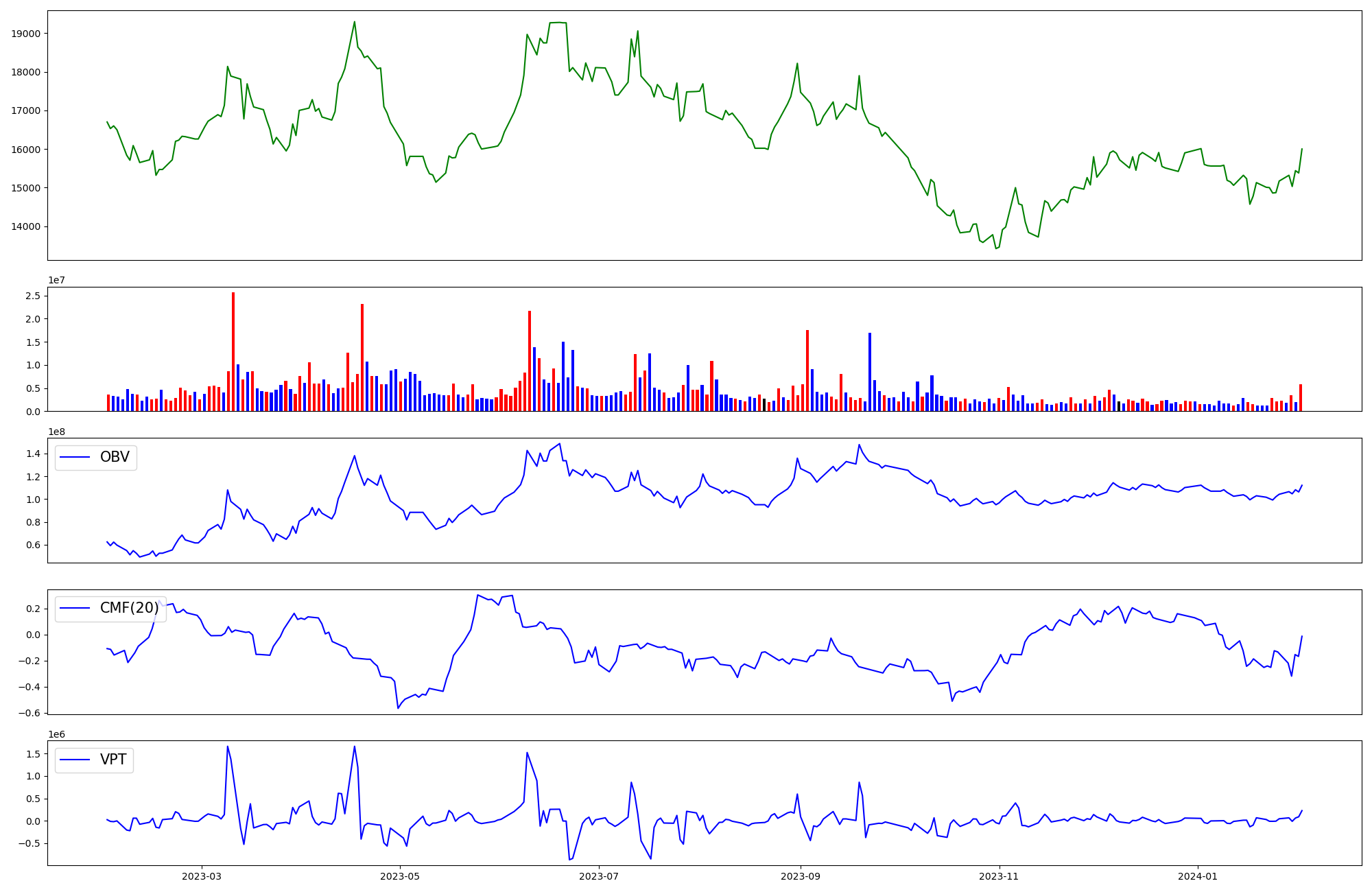 | OBV | CMF | VPT | |