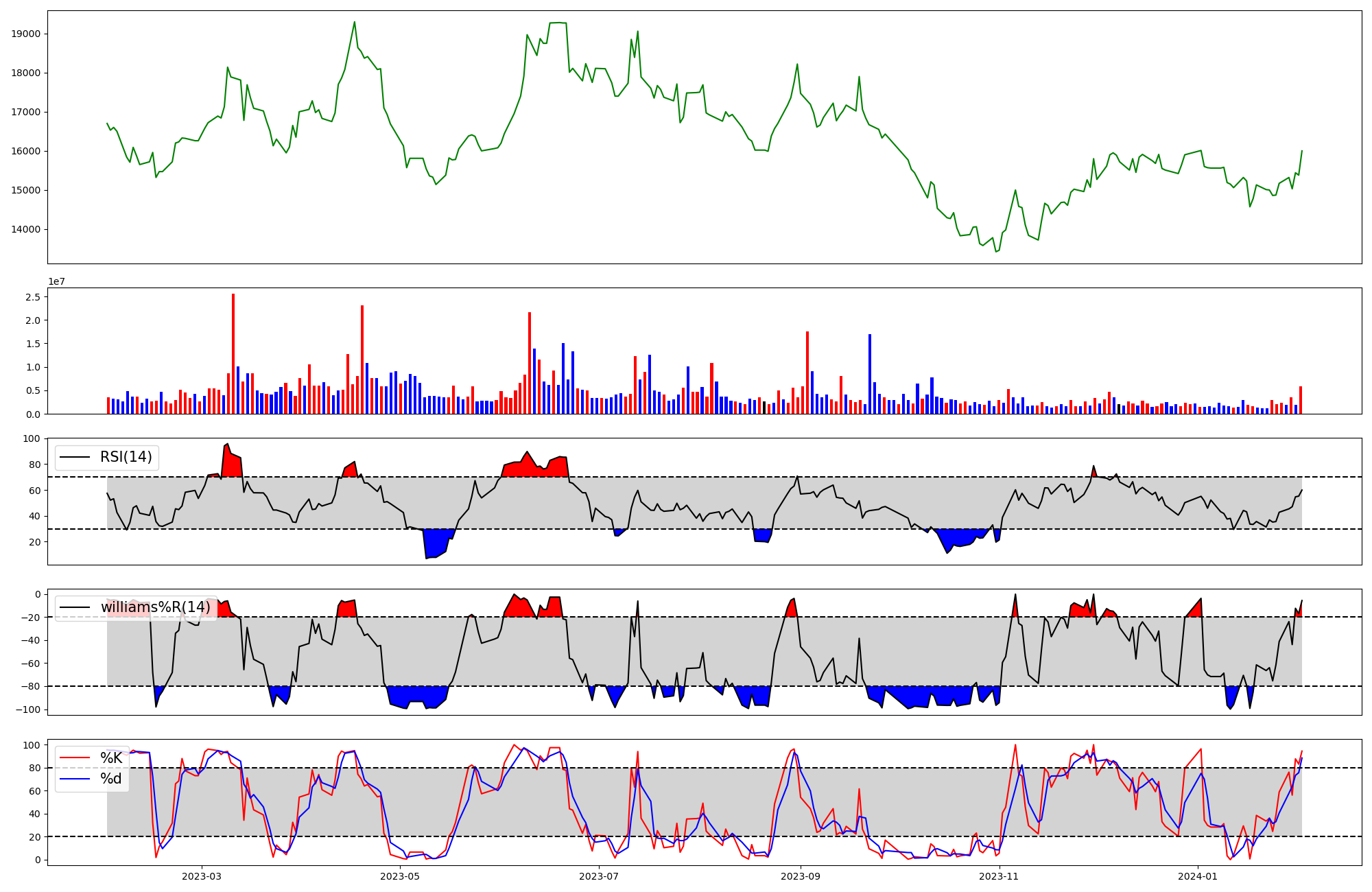 | RSI | Williams %R | stochastic(%K) | |