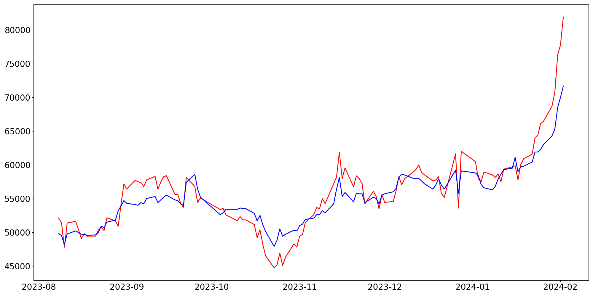 [ - : 실제값(종가) / - : 예측값(종가) ]