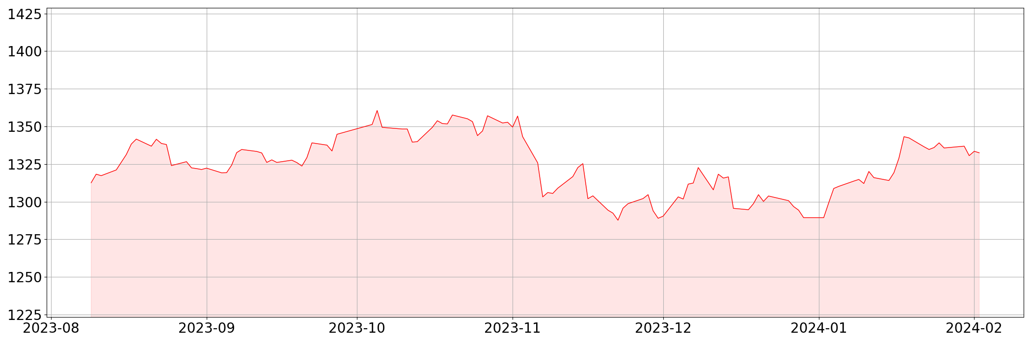 | 현재 | 1,332.50 | -1.00 | -0.07% |