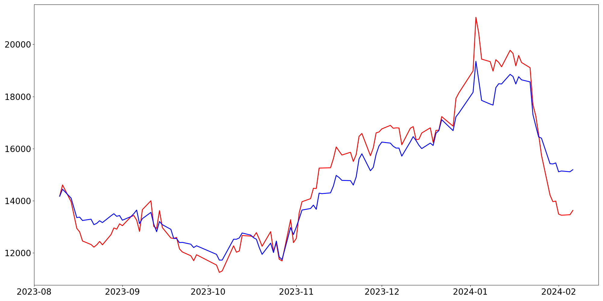 [ - : 실제값(종가) / - : 예측값(종가) ]