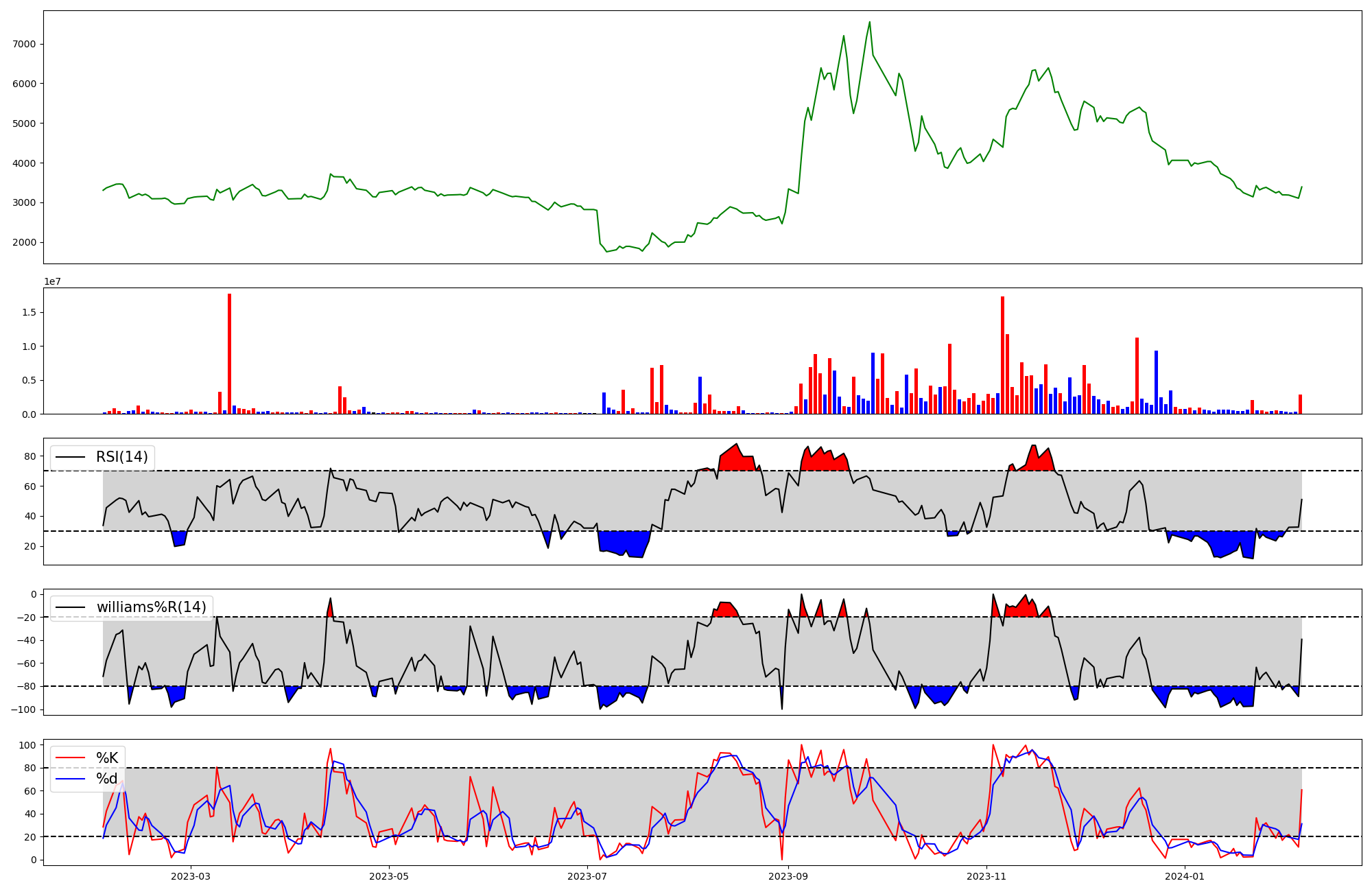 | RSI | Williams %R | stochastic(%K) | |
