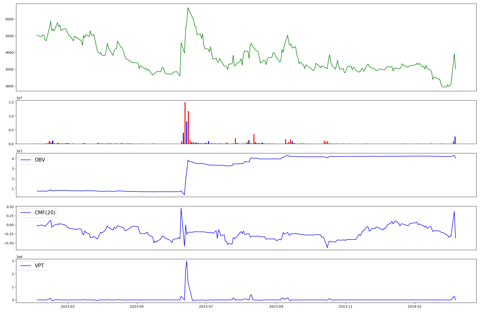 | OBV | CMF | VPT | |