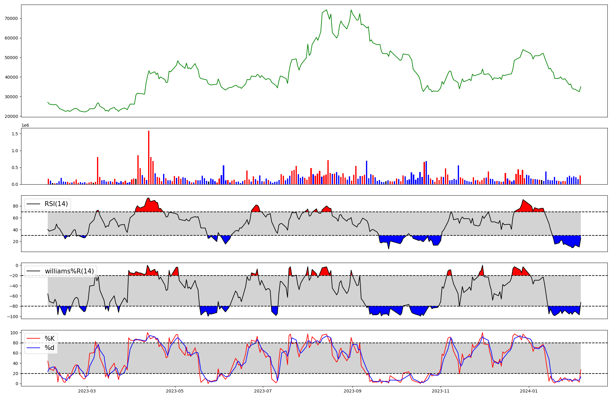 | RSI | Williams %R | stochastic(%K) | |