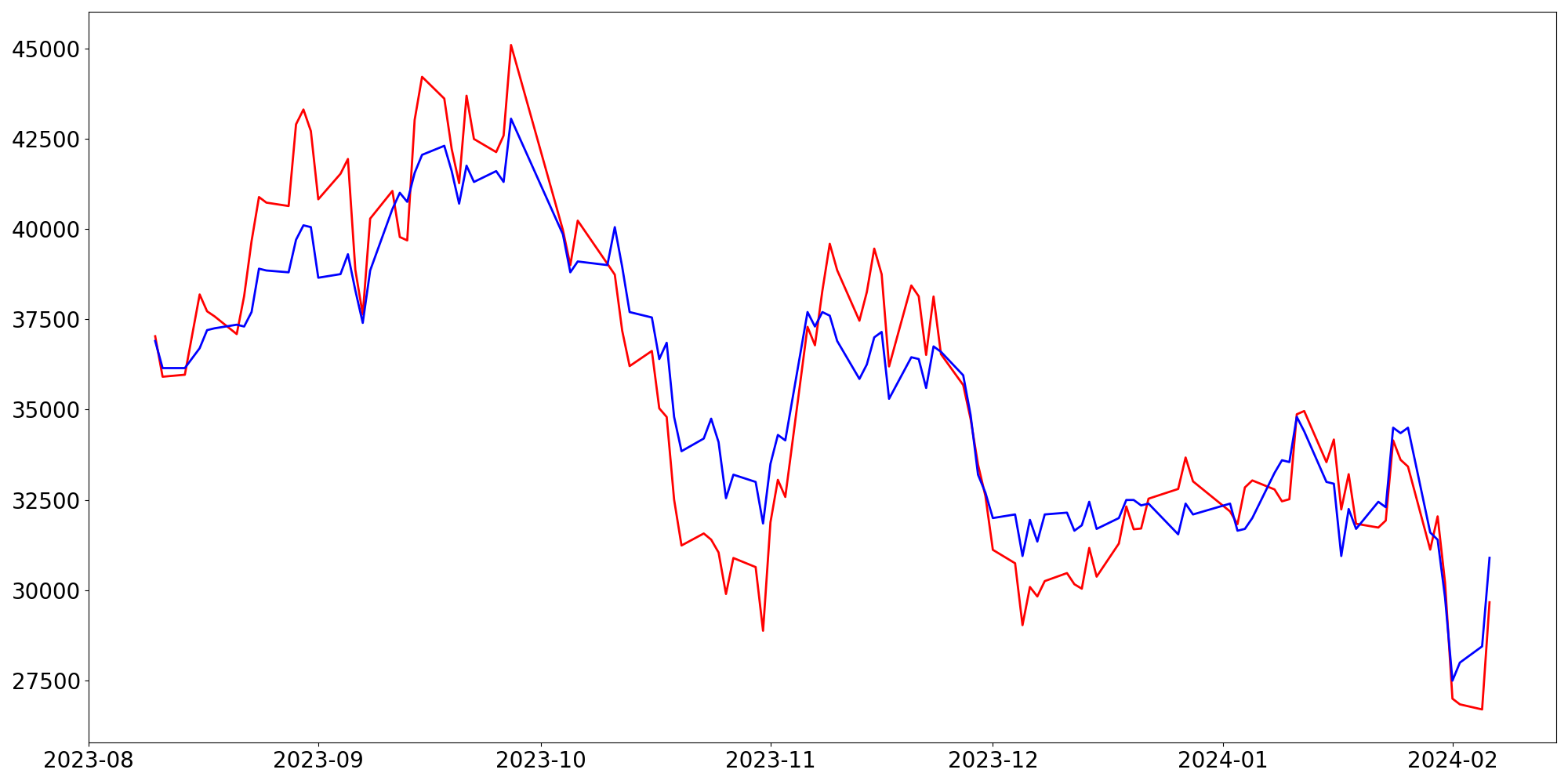 [ - : 실제값(종가) / - : 예측값(종가) ]