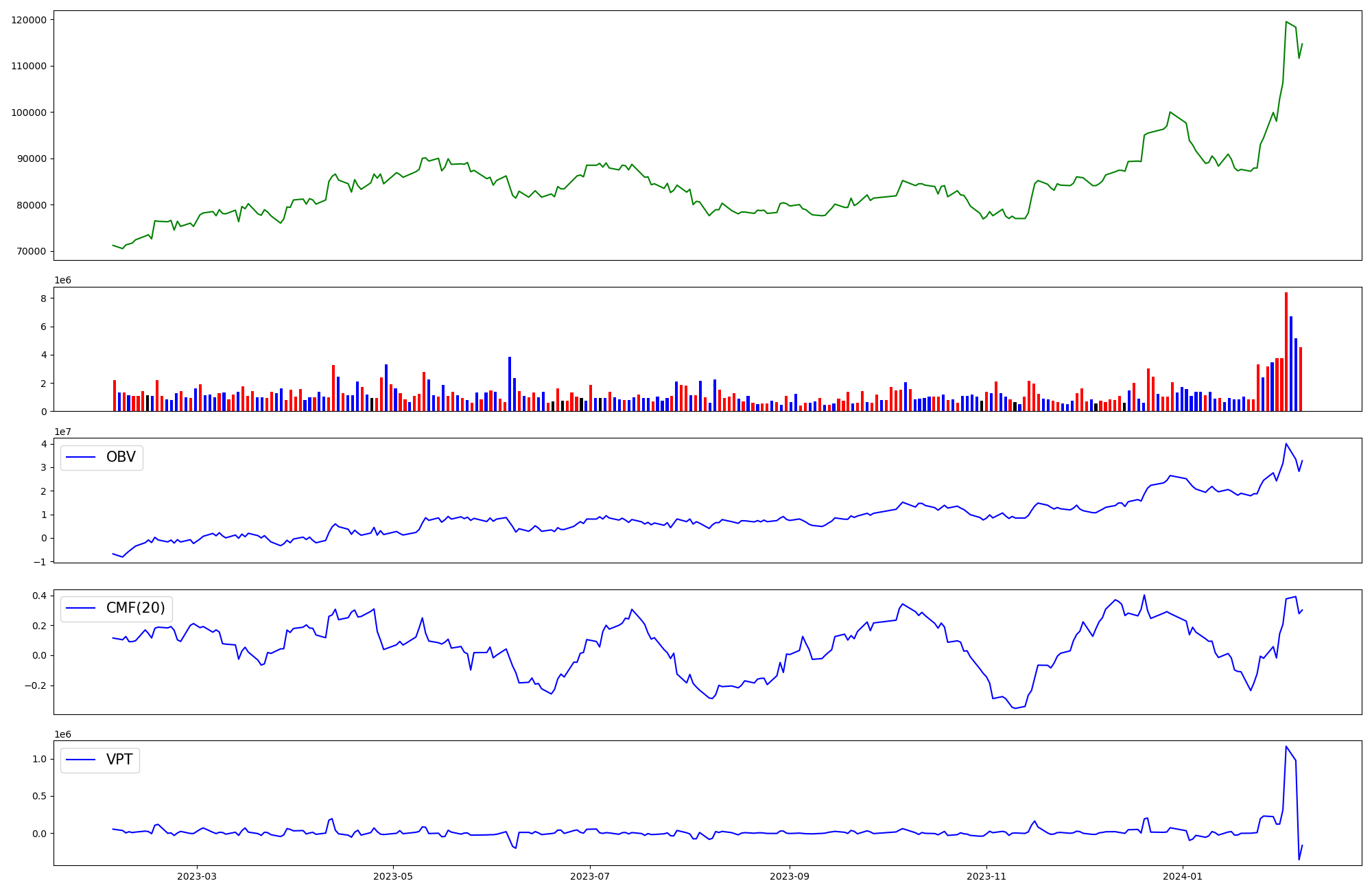 | OBV | CMF | VPT | |
