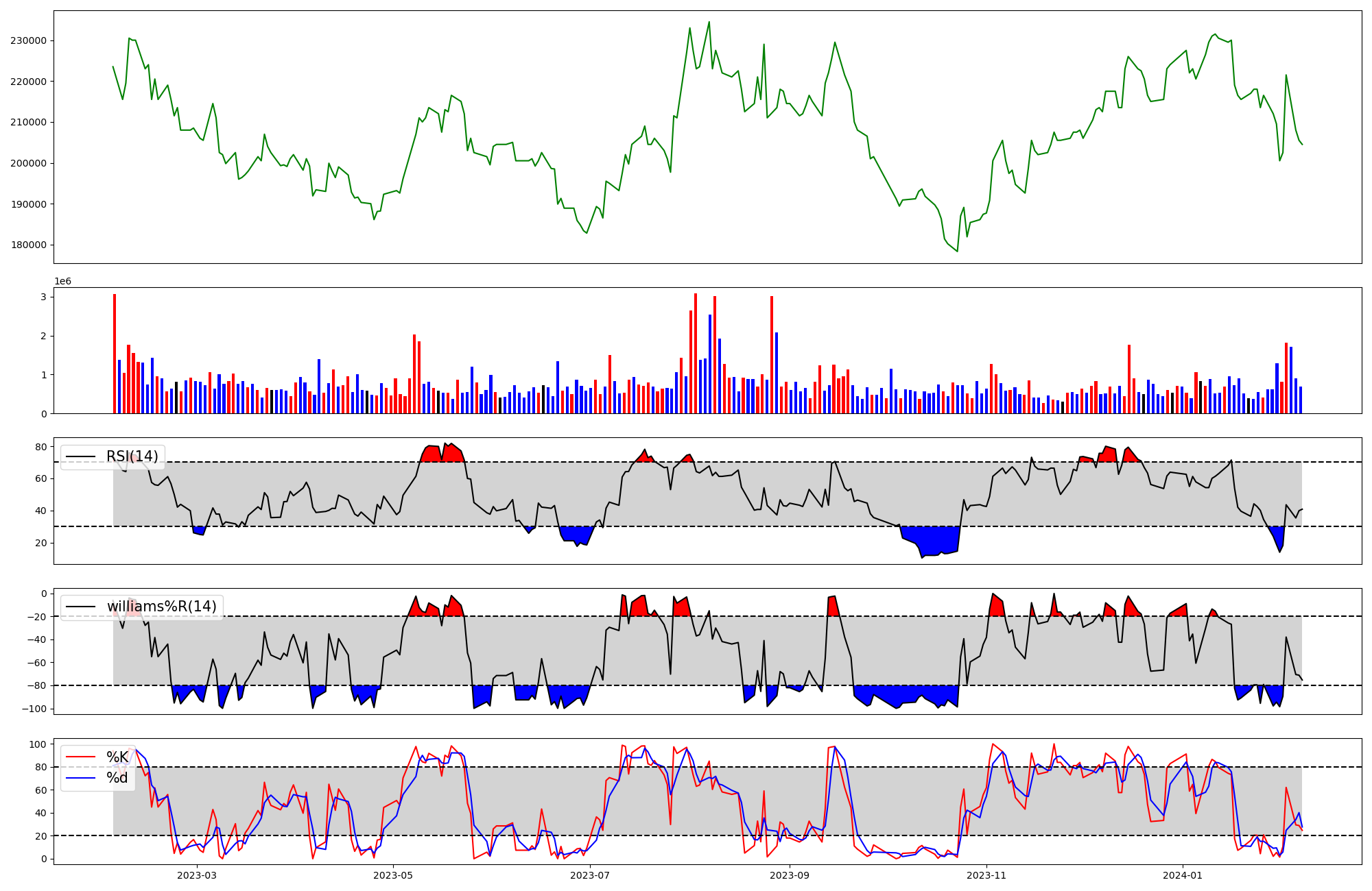 | RSI | Williams %R | stochastic(%K) | |