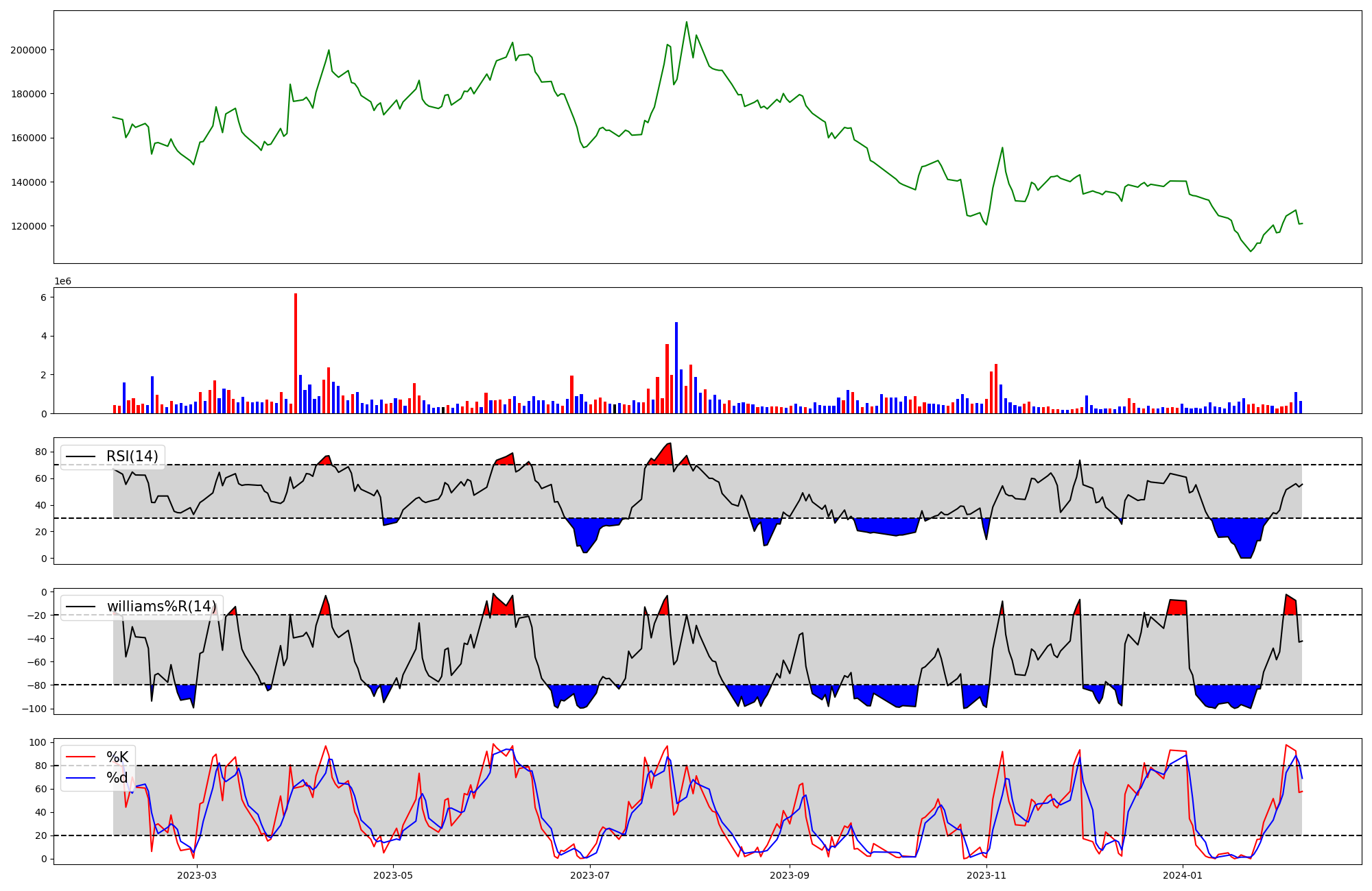 | RSI | Williams %R | stochastic(%K) | |
