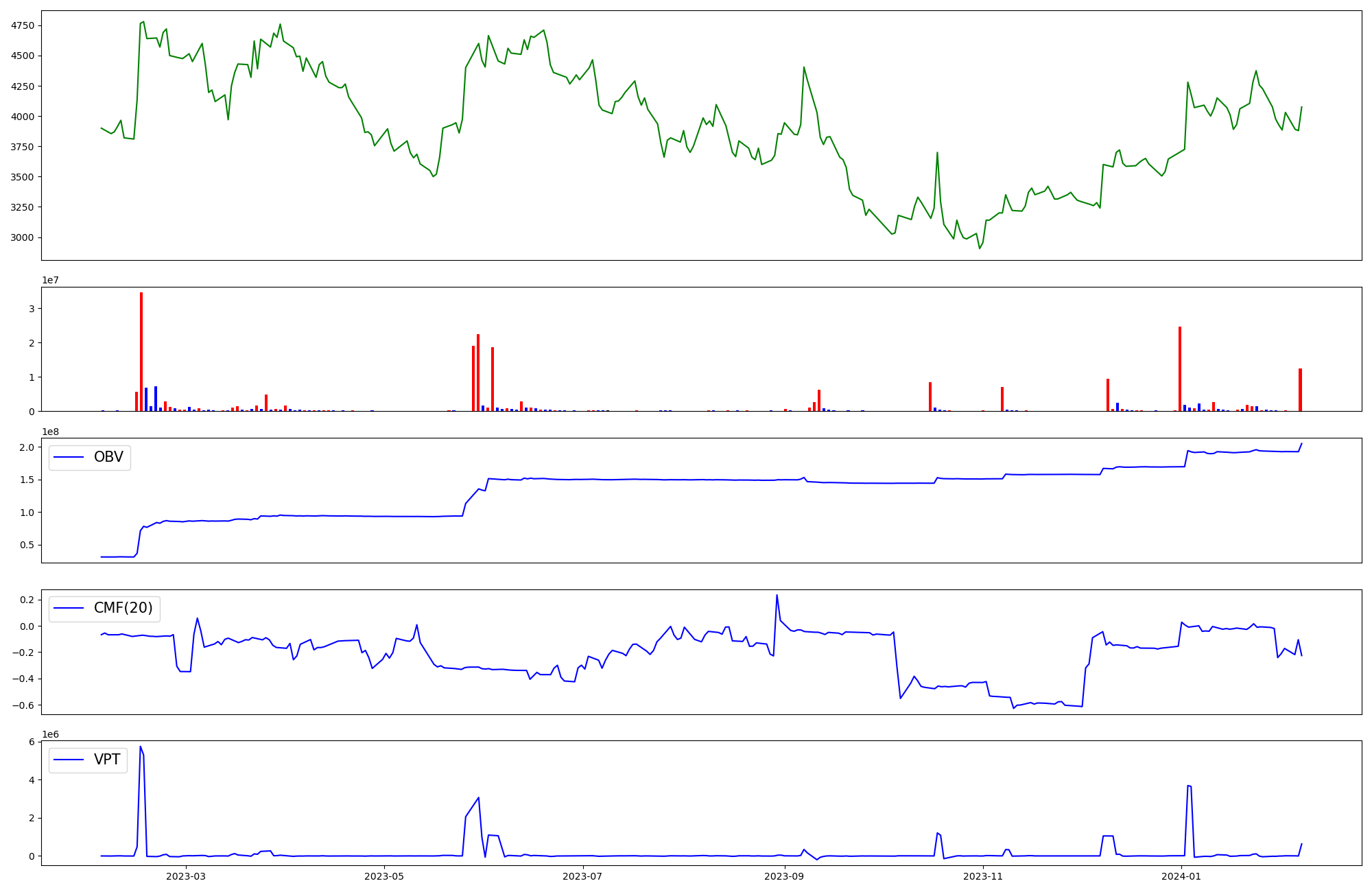 | OBV | CMF | VPT | |