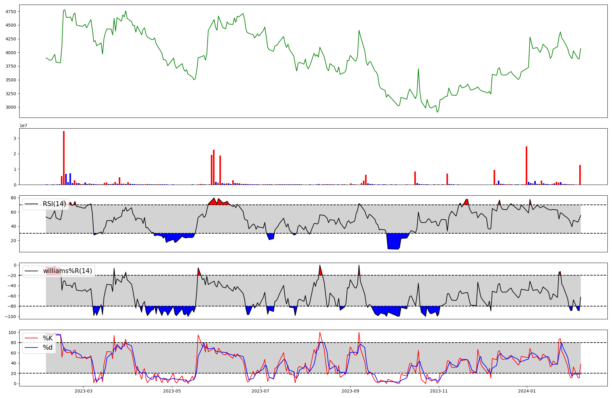 | RSI | Williams %R | stochastic(%K) | |