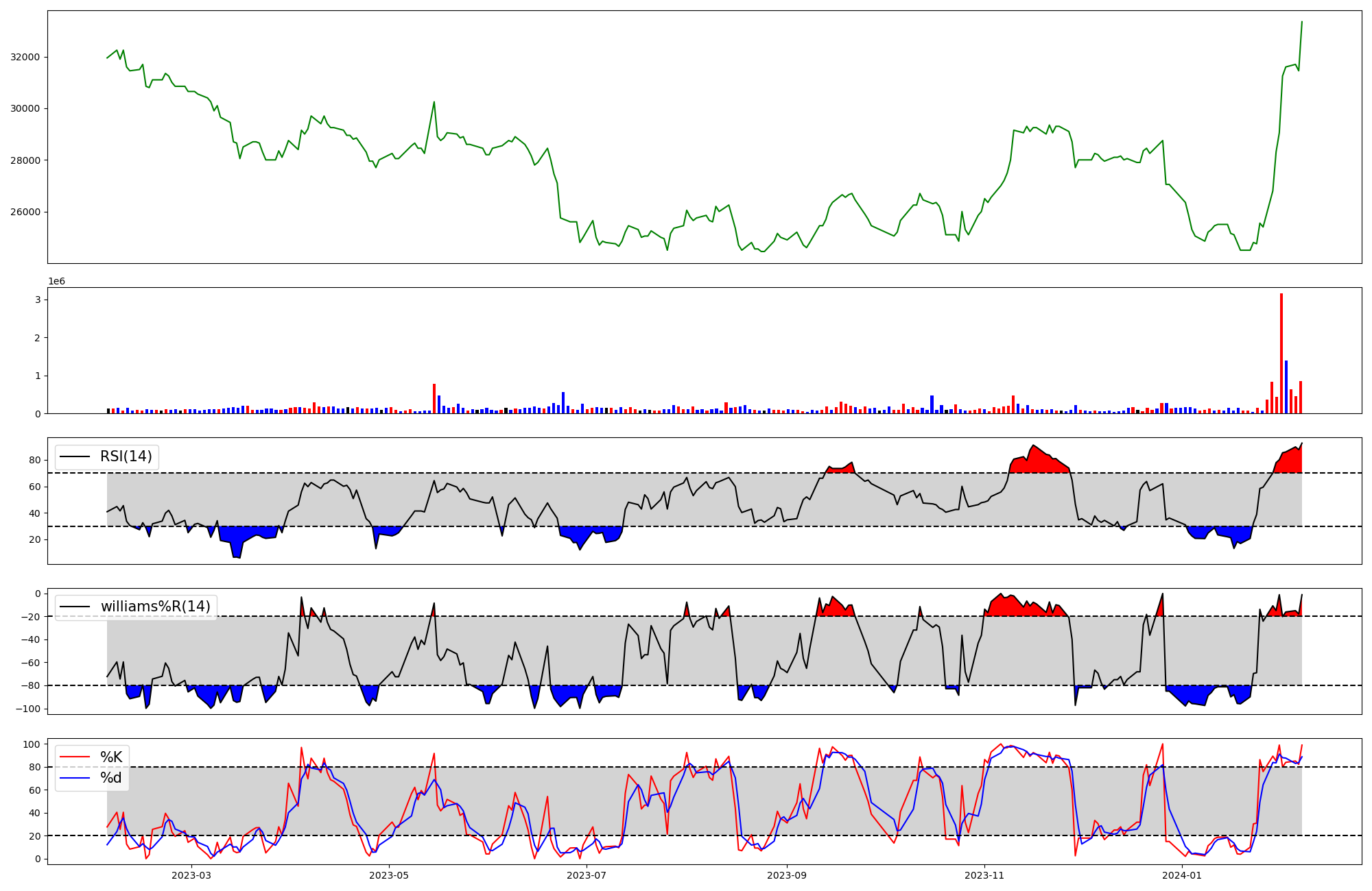 | RSI | Williams %R | stochastic(%K) | |