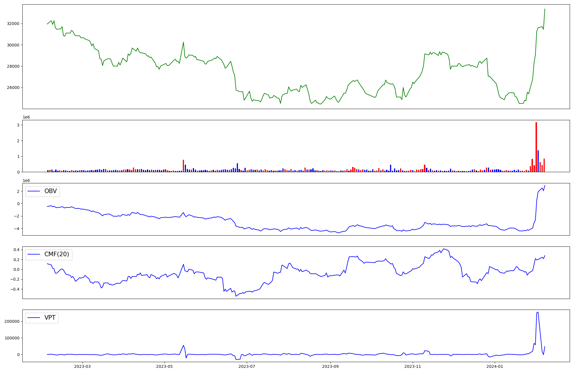 | OBV | CMF | VPT | |
