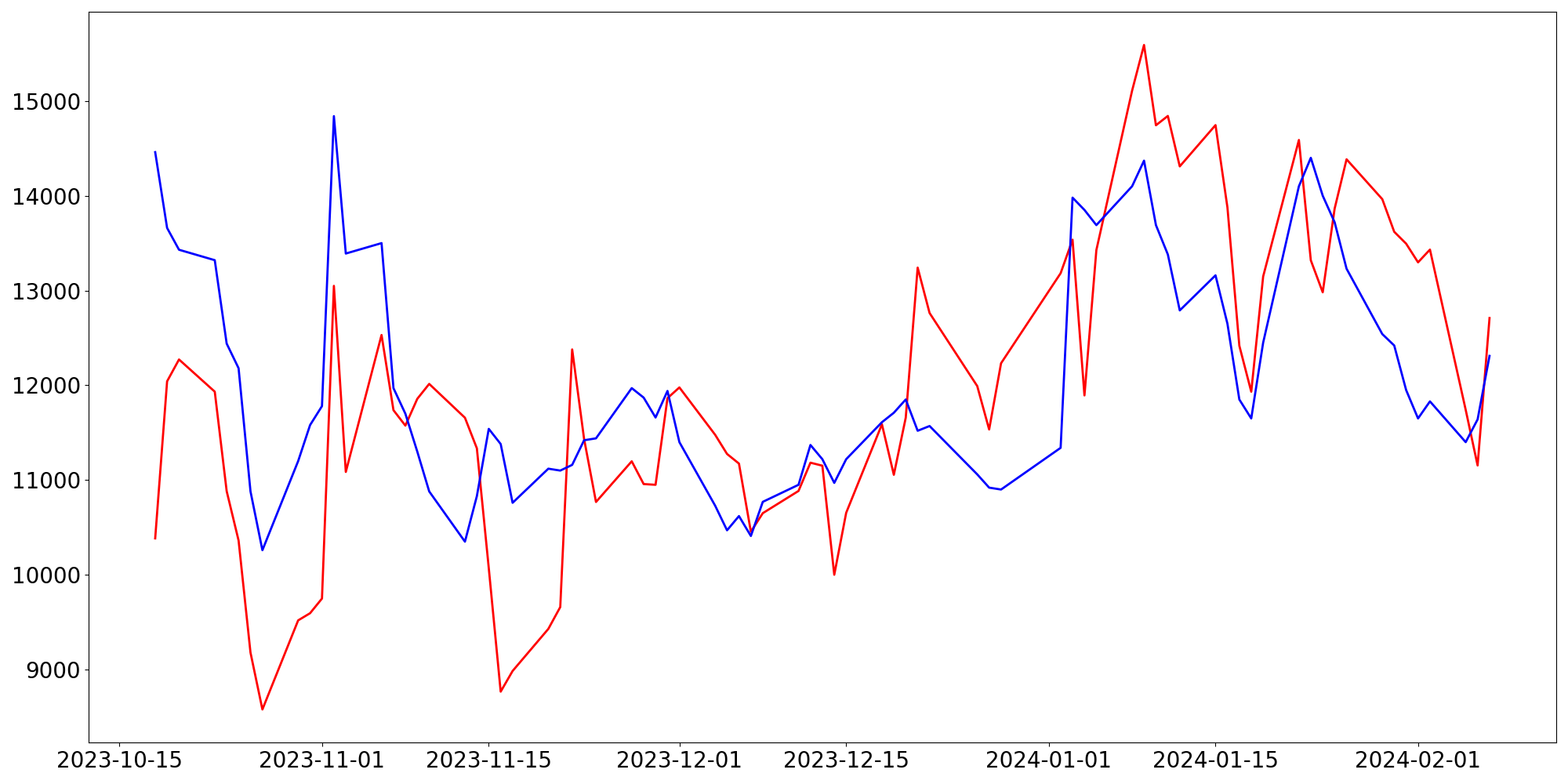 [ - : 실제값(종가) / - : 예측값(종가) ]