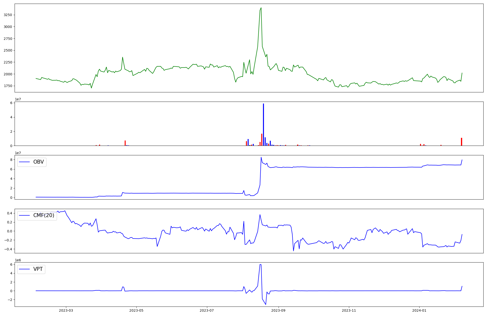 | OBV | CMF | VPT | |